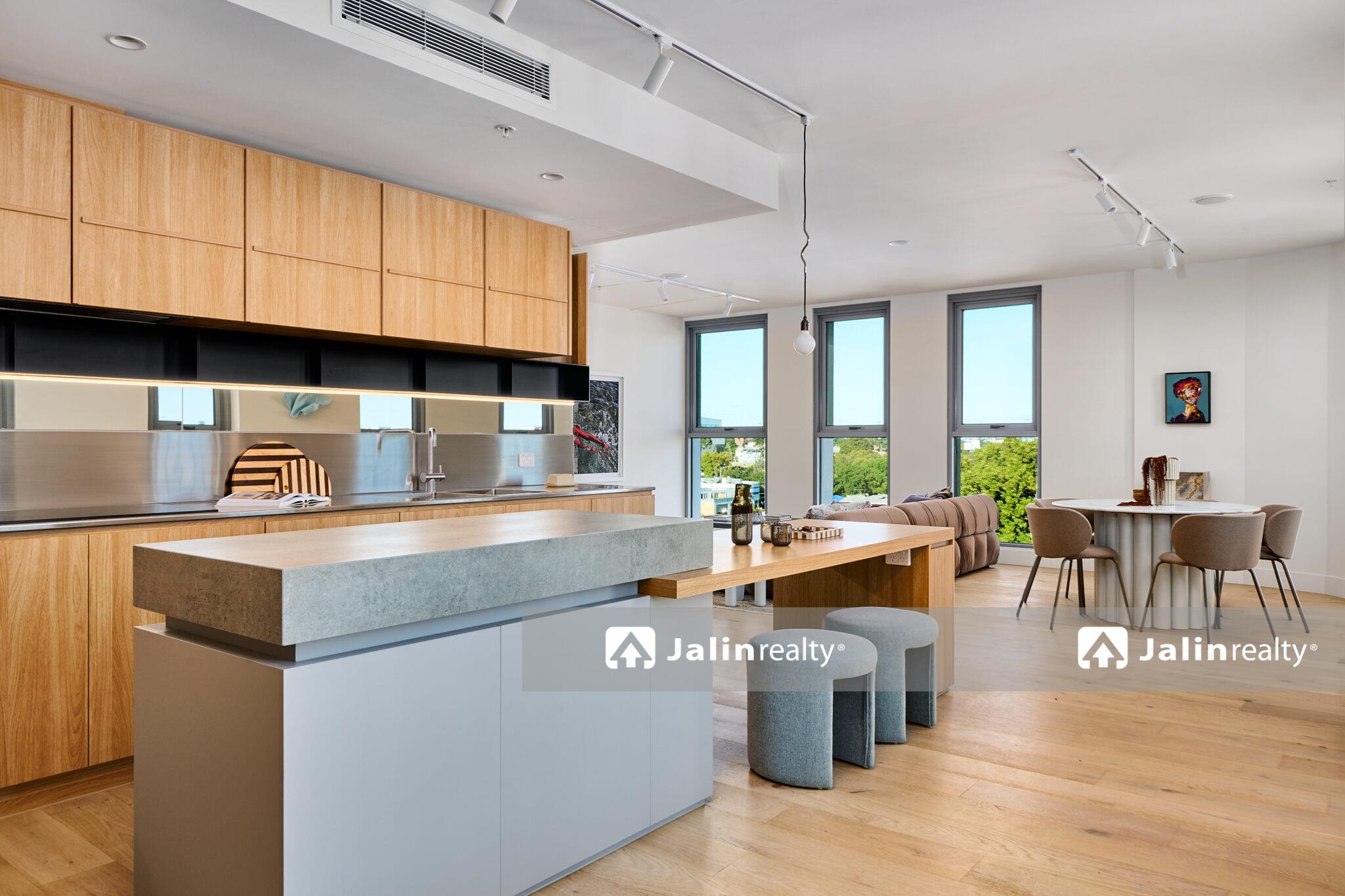 Each home has been meticulously planned to maximise natural light, cross-ventilation, and privacy, achieving an exceptional 8.4-Star NatHERS energy rating and net-zero carbon performance. Interiors feature oak timber flooring, exposed concrete ceilings, and premium European appliances, while expansive terraces and large glazed openings frame uninterrupted city skyline views.
